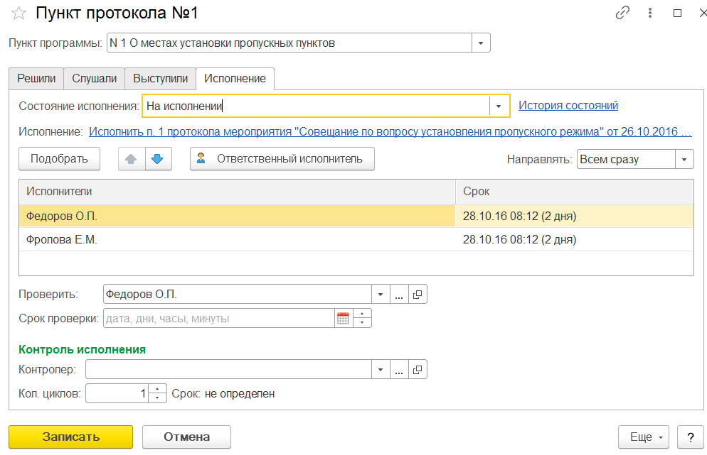 Когда основные настройки завершены проводим тестирование процессов в 1С:Документооборот. Для