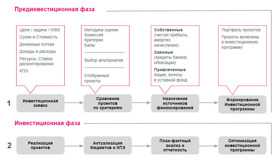 Подсистема позволяет автоматизировать жизненный цикл инвестиционного проекта от инвестиционной идеи до завершения проекта.
