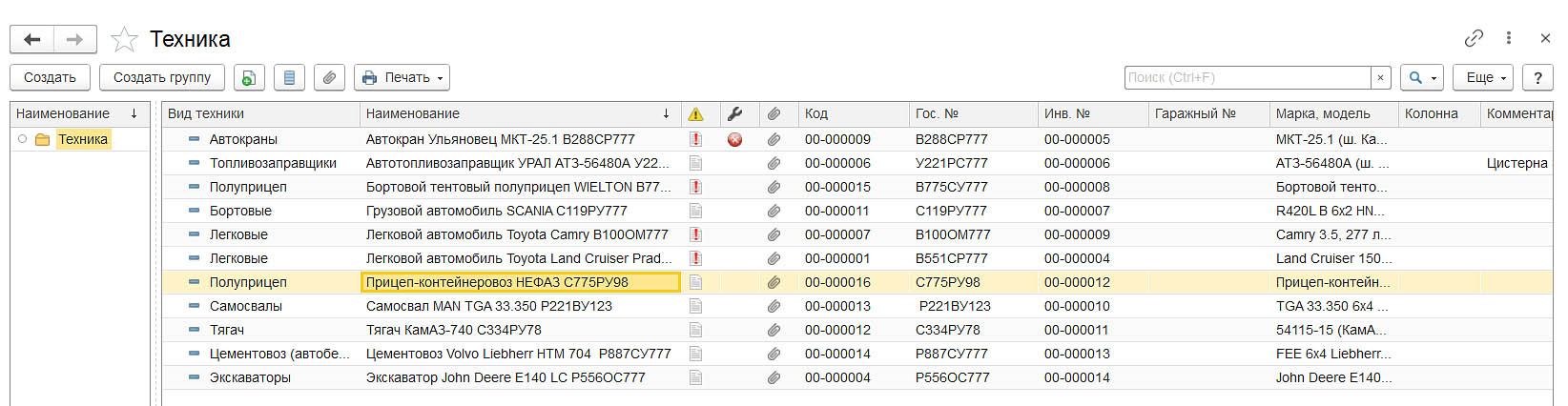 Полные данные о ТС, управление обслуживанием техники, планирование ТО и ремонтов