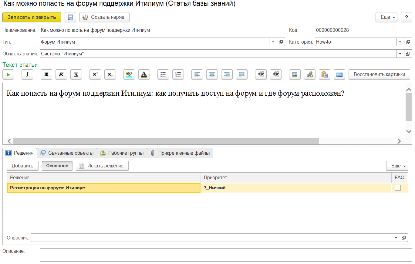 Установка платформы 1С и конфигурации ITILIUM, настройка параметров запуска