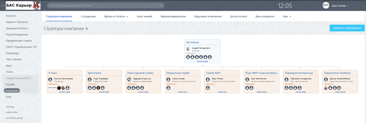 Чтобы сотрудники легко и оперативно находили нужных им коллег, специалисты Первого Бита воссоздали в Битрикс24 иерархию компании и распределили бизнес-роли для удобной коммуникации и оперативного согласования договоров и заявок.