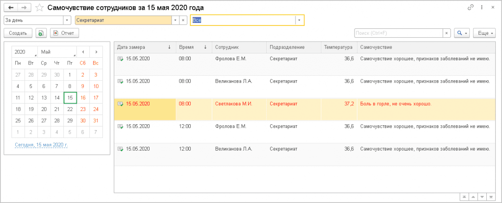 Кроме того, сообщения программы покажут ответственному лицу тех работников, которые не измерили температуру.