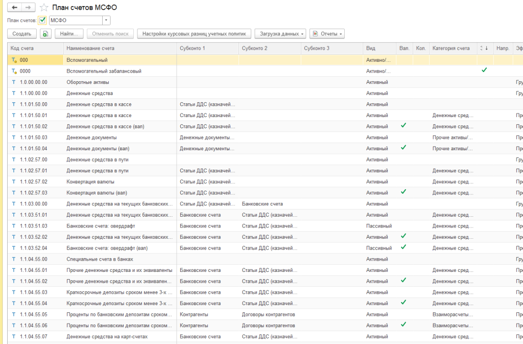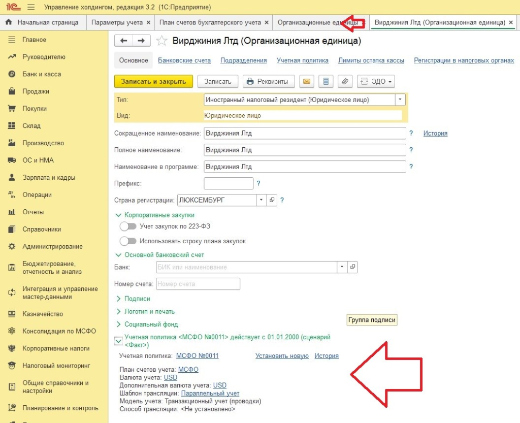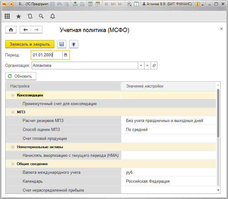 Настройка учетной политики МСФО