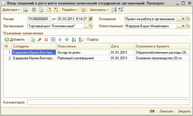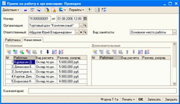 Его рекомендуется использовать для регистрации изменений в отражении заработной платы сотрудников предприятия в регламентированном учете. Он может быть введен на основании приема человека на определенное место работы.