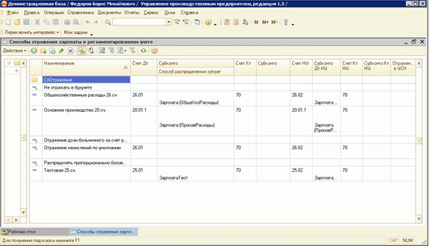 При проведении данный документ создает запись в "Учете основного заработка в регламентированном учете работникам организаций". К примеру, для конкретного сотрудника следует выбрать из "Способов отражения зарплаты в учете" определенный способ отражения.
