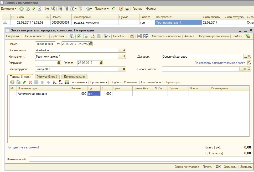 • Первое, что требуется сделать - создать заказ покупателя. В него требуется добавить позицию номенклатуры, которая выступает готовым изделием. Оно предназначено для оплаты покупателем счета на оплату. Нужно понимать, что в данном случае именно заказ покупателя выступает стартом всего рассматриваемого процесса. С этого момента на базе заказа клиента требуется создать заказ на изготовление и таким образом запустить бизнес-процесс.